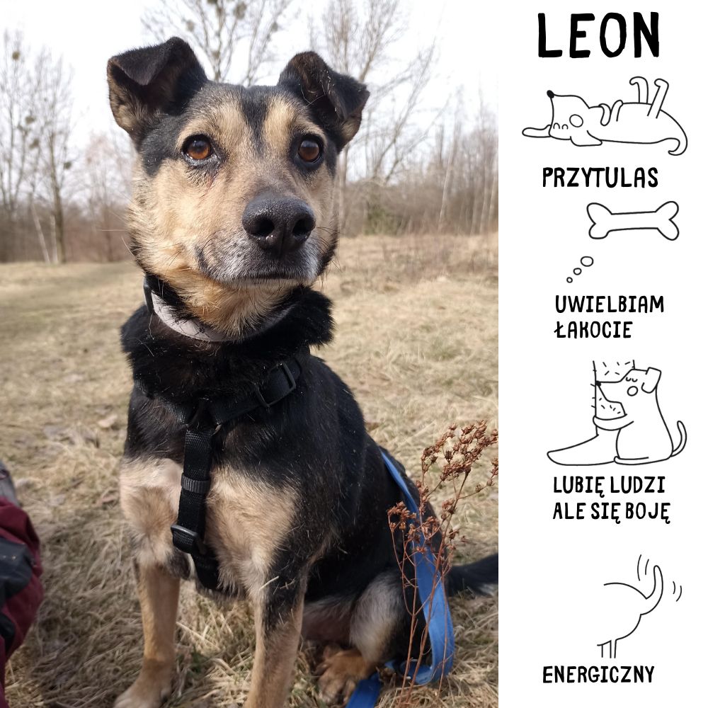Witam mam na imię Leon. Jestem małym, kilkuletnim psem. Do schroniska trafiłem 14 listopada 2022, zostałem wyłapany przez zespół pracowników schroniska. Oczywiście cała akcja nie zakończyłaby się powodzeniem gdyby nie pomoc pracowników Miejskiego Składowiska Odpadów Komunalnych. Na wysypisku urodziłem się, ale kiedy byłem bardzo malutki zostałem zabrany przez pewną rodzinę do domu, niestety kiedy podrosłem stałem się już niepotrzebny i znowu tam wylądowałem ? Najpierw żyłem tam z dwoma suczkami, które zostały zabrane do schroniska wraz z szczeniętami, wtedy udało mi się wymigać i nie trafiłem za kraty, zacząłem trzymać się bliżej pracowników ochrony, żyłem tam w zgodzie z suczką a później jeszcze z drugim psem, który uchował się wśród miotów. Dosyć dobrze żyłem z ludźmi z stróżówki, ale zdarzały się też takie osoby, z którymi nie potrafiłem się dogadać i którym bardzo zależało, żeby jednak mnie wyłapać.