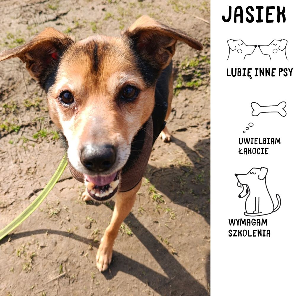 Dzień dobry, nazywam się Jasiek i jestem małym, kilkuletnim psem. W schronisku zamieszkałem wraz z Pankim 8 lutego 2023 roku. Po interwencji II Komisariatu Policji zostaliśmy zabrani do schroniska, ponieważ nasza właścicielka trafiła do szpitala. Panki i ja jesteśmy psami, które w tym momencie boją się nawet wiatru. Dlaczego? Ponieważ nasza właścicielka nie wyprowadzała nas na zewnątrz, nie wiedzieliśmy co to spacer, ani do czego służy smycz. Panki ma zupełnie inną strategię radzenia sobie z sytuacjami, ja gdy czuję się zagrożony, uciekam gdzie się da. Teraz mieszkamy w boksie, kiedy człowiek pojawia się z jednej strony, my uciekamy na drugą. Owszem gdy podrzucają kulki z pasztetu albo kawałki parówek to chętnie zjadamy, ale to jest sekunda i nas nie ma. Robimy postępy przy ludziach, którzy wykonują przy nas czynności np.: porządkowe, sprzątanie itd. Zdecydowanie ja jestem bardziej przerażony wszystkim niż Panki, choć kiedy wydaje mi się, że nikogo nie ma, jestem w stanie zbliżyć się do tego miejsca, gdzie wcześniej był opiekun. Niestety nie zmienia to zbyt wiele, ponieważ przy takiej ilości psów, które lgną do ludzi i chcą z nimi przebywać my, odludki nie robimy zbyt dużego wrażenia, o ile ktokolwiek nas zauważy...