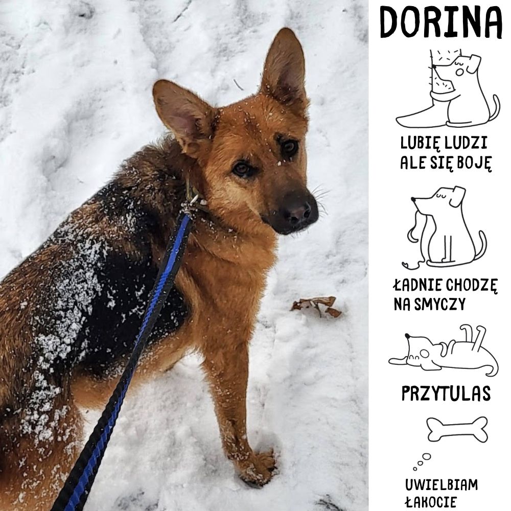 Witam mam na imię Dorina, jestem małą suczką, urodziłam się w okolicach listopada 2019 roku. Byłam podopieczną schroniska w Nowinach. Zostałam zaadoptowana przez rodzinę z Zabrza, na umowie adopcyjnej moja właścicielka podpisała deklarację, iż jest świadoma leczenia, które w moim stanie zdrowia jest konieczne. Niestety jak już teraz wiadomo trafiłam 11 października 2023 roku do schroniska Psitulmnie, zostałam znaleziona przez kompletnie obcą mi osobę w okolicach ul. Mikulczyckiej. Podejrzewali, że zostałam uderzona przez samochód... jednak to nie przez wypadek. Cierpię na padaczkę a w dodatku byłam brudna i cała wyłysiała - po inwazji pcheł a w dodatku z wilczym apetytem jakbym nigdy nie jadła. Ostatnio coraz to częściej personel schroniska spotyka się z takimi przypadkami.. Niestety nikt się nie poczuwał do wzięcia za mnie odpowiedzialności.. Schronisko poprzednie nie istnieje, a ja nie mam domu, tym razem schronisko pełni tą funkcję.. Dopiero po kilku dniach zaczęłam podchodzić do człowieka, w głównej mierze zainteresowana ewentualnym jedzeniem. Teraz dopiero widok człowieka wywołuje we mnie radośc, bo wiem, że pójdę na spacer, będę głaskana...Będę z człowiekiem na wyłączność. Ale chciałabym już mieć dom, taki na zawsze. Taki prawdziwy. Jestem bardzo ułożoną, łagodną suczką. Potrzebuję spokojnej i wyrozumiałej rodziny, która chce móc się kimś opiekować. Mieszkam wraz ze swoim bardzo spokojnym kolegą, który ma już demencję.. Gdy wychodzę z boksu wiedzą i słyszą o tym wszyscy, kiedy uda mi się powęszyć kawałek polany następuje cisza.. Chciałabym żeby te koszmary ze schroniskami, różnymi domami i tułaczkami wreszcie się skończyły. Podczas pobytu w Psitulu, zwiedziłam jeszcze Centrum Weterynaryjne. Miałam przeprowadzone badania, dzięki czemu dopasowano mi leczenie, po którym ataki ustąpiły i zebrałam siłę. Jestem gotowa do węszenia za nowym domem...