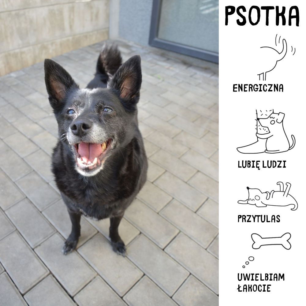 Witajcie, mam na Psotka. Jestem małą, przeuroczą suczką. Urodziłam się w 2010 roku. Wiodłam sobie pieskie życie u boku mojej właścicielki. Raz nawet trafiłam do schroniska, a było to 22 października 2023 roku, przywieziono mnie z interwencji z okolic ul. Królewskiej. Następnego dnia odebrała mnie moja pani. Tym razem przywieziono mnie 24 września 2024 roku, moja właścicielka odwiedzając swojego znajomego niestety zmarła. Zostałam więc przywieziona do schroniska. Rodzina mojej właścicielki nie przybyła do schroniska w celu przedyskutowania moich dalszych losów. Personel schroniska jest mną zachwycony, wdzięczę się do nich najbardziej jak tylko potrafię, bardzo bym chciała by ze mną przebywali, głaskali, po prostu ze mną byli. Zważając na mój wiek pewnie nie będzie tłumu chętnych jednak gwarantuję, że jeśli mnie troszeczkę poznasz to nie będziesz potrafił/a przestać o mnie myśleć. Mam w sobie duch wędrownika, uwielbiam spacerować. Jeśli miałabym tylko z kim spacerować z lekkością zrzuciłabym swój nadmiar tłuszczyku. Bo faktem jest, że mam ogromny apetyt - jedzonko jest super! Póki co nie przejawiam złych emocji względem innych psów. Jedynie nie umknie mojej uwadze gdy opiekun, którego lubię przebywa z innym psiakiem, wtedy hałasuję żeby i o mnie pamiętał... :) Tak więc jeśli lubisz łono natury, czuć w dłoniach miękkie futerko i spoglądać na uśmiech od ucha do ucha to zapraszam Cię w moje grono, chętnie Ci pokażę nasze polany :) Wypełnij tylko ankietę resztą się zajmę :)