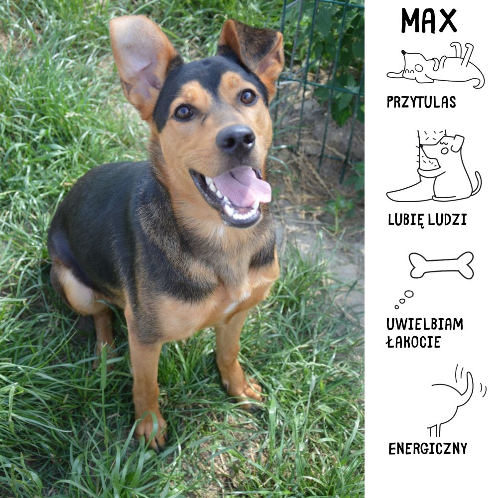 Cześć, tu Maks! Mam około roku, jestem średniej wielkości i… raczej nie da się mnie nie zauważyć ???? Trafiłem do schroniska 15 czerwca 2025 r. – według "oficjalnej wersji" znaleziono mnie błąkającego się przy ul. Okrzei. Prawda jednak jest trochę inna – byłem po prostu za bardzo... sobą. Nie radzili sobie ze mną, nie dogadywałem się z drugim psem i tak oto trafiłem tutaj. No i cóż mogę powiedzieć… wulkan energii to mało powiedziane. Jestem żywiołem w czystej postaci – taki pies turbo doładowany. Potrzebuję opiekuna, który ma dużo czasu, cierpliwości i chęci, by ze mną pracować. Wiem, że to spore wyzwanie – ale uwierz mi, warto. Bo ja naprawdę chcę się uczyć i być najlepszą wersją siebie. Wiem już, co to „siad” i wykonuję tę komendę jak zawodowiec – ktoś kiedyś trochę ze mną pracował. A najlepsze jest to, że jestem bardzo plastyczny – chłonę wiedzę jak gąbka i tylko czekam, aż ktoś pokaże mi, jak być grzecznym psem z zasadami. Wysokie pobudzenie to coś, nad czym trzeba popracować, ale mam nadzieję, że po planowanym zabiegu kastracji (już niedługo!) będzie łatwiej.