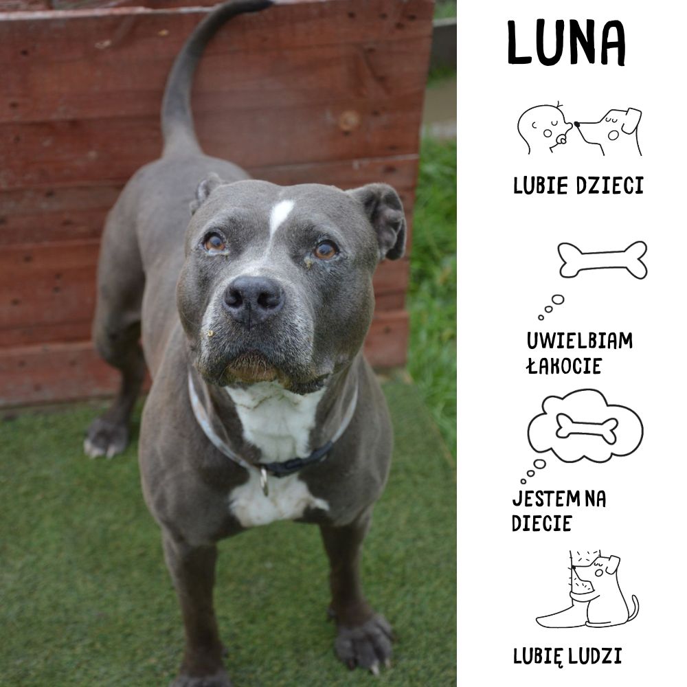 Cześć! Jestem Luna, uroczą i lojalną suczką średniej wielkości, która potrzebuje kogoś, kto pokaże mi prawdziwą miłość i troskę. Pochodzę z okolic ulicy Św. Urbana, gdzie starsznie się bałam i byłam zaniedbana. Znalazłam się tutaj po interwencji, a teraz staram się odzyskać radość życia. Jestem alergikiem, więc niestety nie mogę jeść drobiu i ryb, ale w zamian chętnie spróbuję innego pysznego posiłku! Mam aktualne szczepienia i niedługo czeka mnie zabieg sterylizacji. Przez życie nie miałam łatwo, a moi poprzedni właściciele nie zawsze mnie dobrze traktowali. Mimo to, uwierz mi, jestem pełna dobroci i czekam na kogoś, kto mnie zrozumie. Uwielbiam dzieci i mam dobre doświadczenia z nimi, więc chętnie się do Was dołączę! Potrzebuję trochę czasu, aby zaufać i otworzyć się na nowych ludzi, ale wiem, że z odpowiednim wsparciem pokażę Ci, jak słodką i miłą potrafię być! Czekam na Ciebie, byśmy mogli rozpocząć nowe, wspaniałe życie razem.