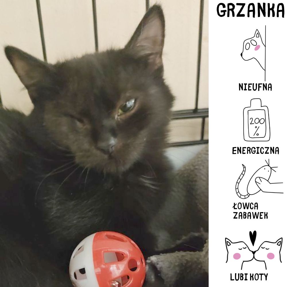 Miau! Nazywam się Grzanka i urodziłam się prawdopodobnie w czerwcu. Do schroniska trafiłam 13 września 2025 roku razem z moim bratem Sernikiem – oboje byliśmy wtedy bardzo schorowani. Na szczęście dzięki opiece i miłości ludzi czuję się już dużo lepiej. Jestem trochę nieśmiała i ostrożna, ale wcale nie agresywna. Potrzebuję tylko trochę czasu, by zaufać nowym osobom. Gdy poczuję się bezpiecznie, okazuję, że jestem wesołą, energiczną i ciekawą kotką, która uwielbia zabawy i towarzystwo innych kotów – a zwłaszcza mojego brata! Mam wadę rozwojową, z powodu której w przyszłości mogę potrzebować zabiegu, ale nie martw się – jestem dzielna i gotowa, by iść przez życie z kimś, kto mnie pokocha mimo wszystko.